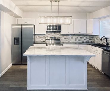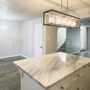 The updated kitchen is a true highlight, featuring a granite island with an amazing new brushed nickel light fixture hanging above it, along with marble countertops and new decorative backsplash tiles. This home also has brand-new stainless steel appliances, sleek new brushed nickel light fixtures, and stylish brushed nickel hardware that perfectly complement the entire home decor. Every detail has been thoughtfully considered, from the freshly painted walls to the new 6-panel doors that add an extra touch of elegance. The utility room has washer/dryer connections and is located inside the townhouse for added convenience.